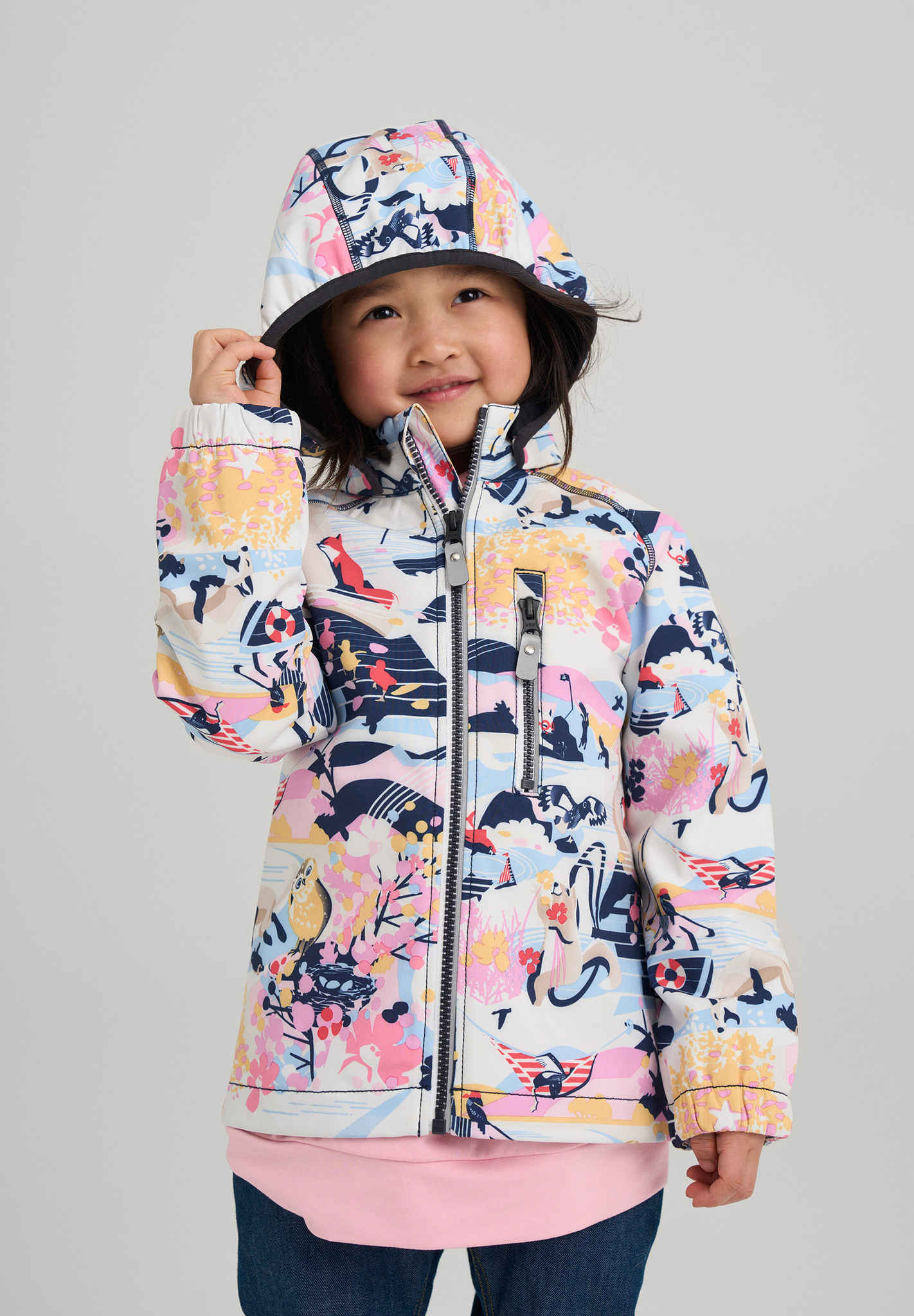 If you want one reliable jacket for getting out and about, quick and hassle-free, choose Vantti. It's the ideal protection for back yard adventures, a shopping tour, and starting school or day care. Reima softshell material is waterproof to keep sudden showers at bay, and windproof to keep the chilling winds out. The soft fleece on the reverse not only feels nice against the skin but warms kids, too. Because the material is soft, light and flexible, kids love wearing it - no wonder this is one our best sellers year after year.